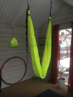 På väg mot dörren beslöt jag att återvända till min gunga, leka lite kunde jag i alla fall unna mig. Flyga högt och trixa. På väg upp i gudinneposen hörde jag ljudet, byxan sprack i grenen!